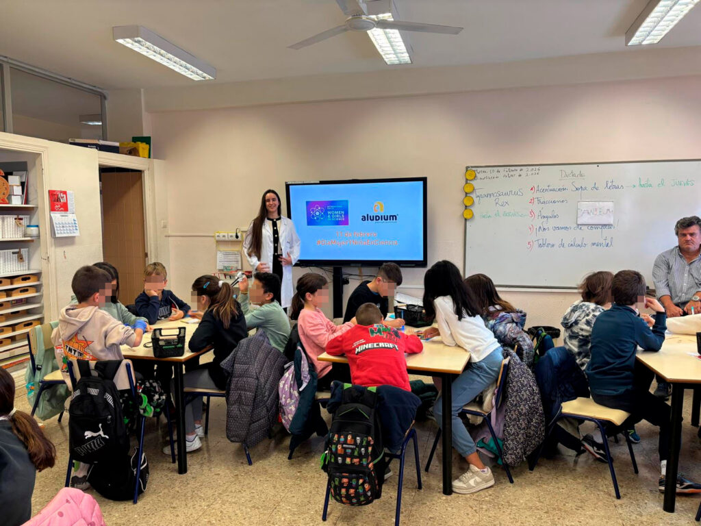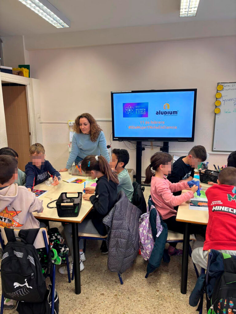 Ayer, con motivo de este día mundial, presentamos el vídeo dirigido a niñas y adolescentes al alumnado de cuarto de Primaria del colegio CEIP San Blas de Alicante. Tras su visionado, hablaron sobre la transformación del aluminio en Aludium y las mujeres en las STEAM. La sesión educativa fue desarrollada por nuestras compañeras Irene Cebrián (Ingeniera Biomedicina y EHS) y Eva Hernández (Ciencias Empresariales y Logística), que prepararon un juego de lógica científico (scape room) donde prueba a prueba hablaron sobre la importancia del aluminio en el mundo de la ciencia, de su reciclaje infinito y cómo la profesión de ingeniera en biomedicina hace posible mejorar este proceso industrial en prevención de riesgos laborales.